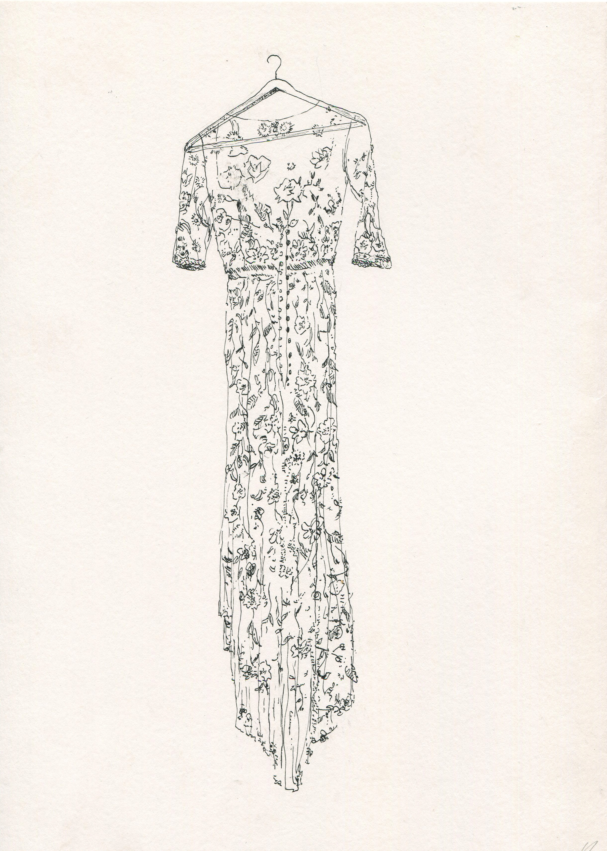 Dress studio 1, ink on paper