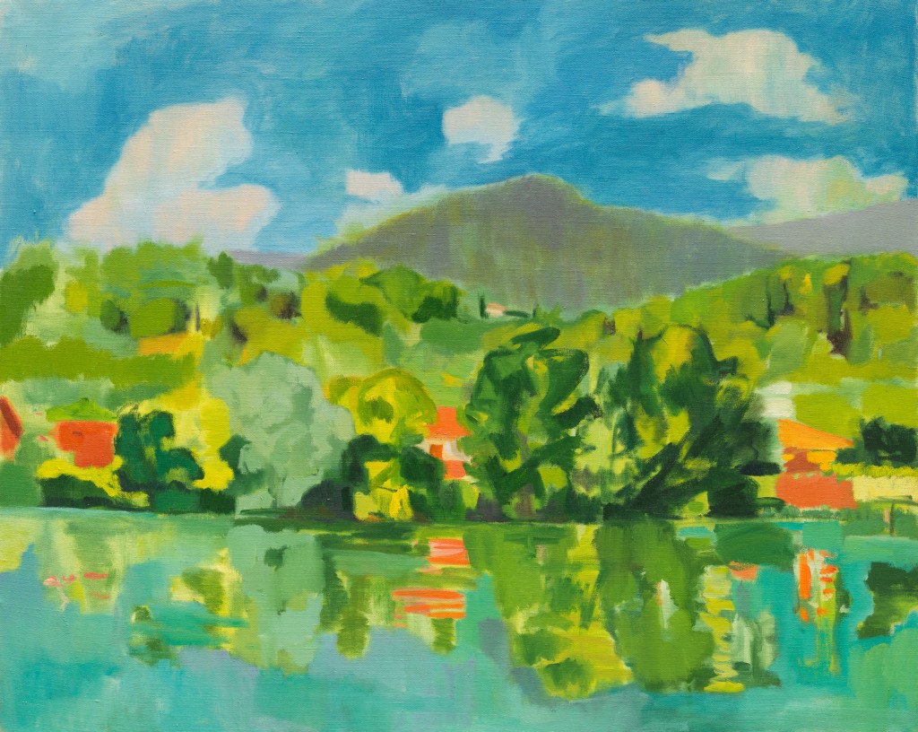 Francesco Poiana has recently travelled further and deeper into the land in which he grew-up (Northeast Italy). Working and researching en plein air and from memory in the studio, he has seen more, seen anew and returned with unfamiliar gifts. There is a sense of journeying implicit in his latest paintings, of hopeful outward venturing and reconciled return. They invite us to join the artist in achieving states of grace in beloved places.