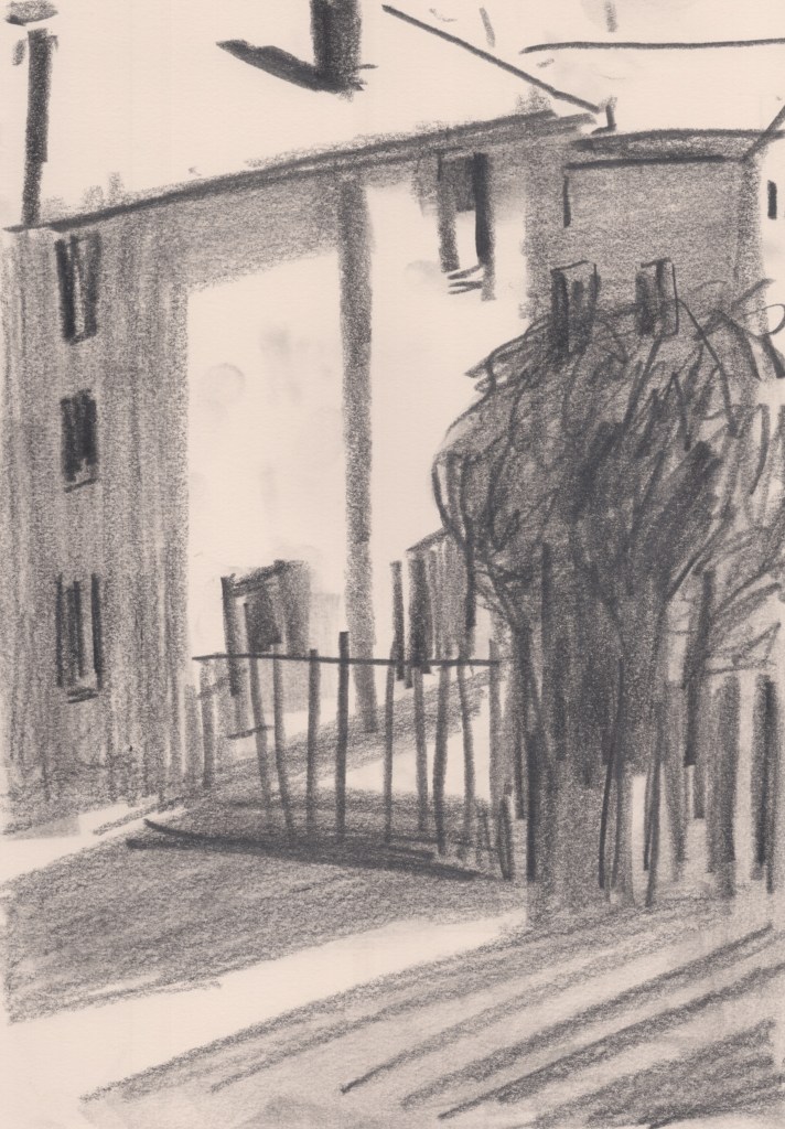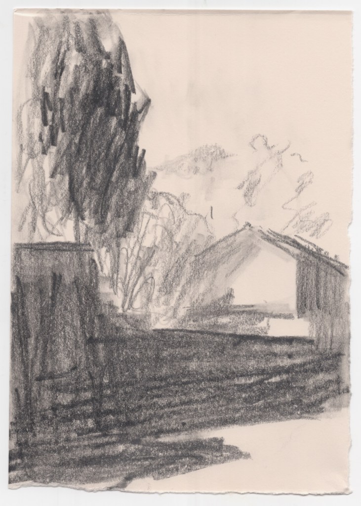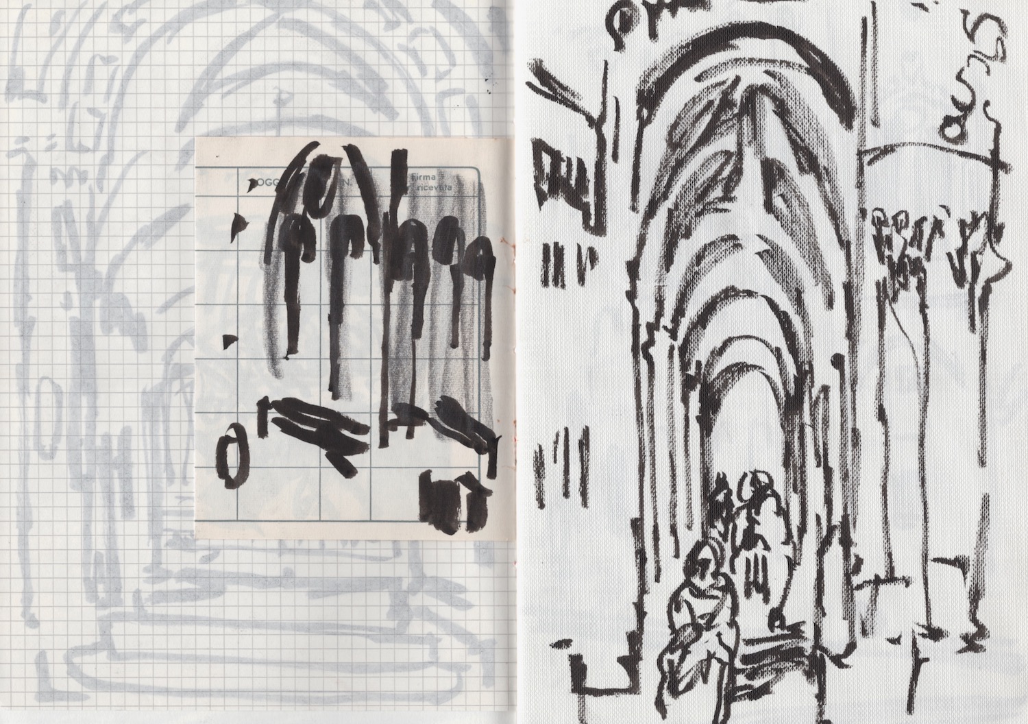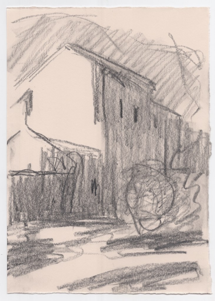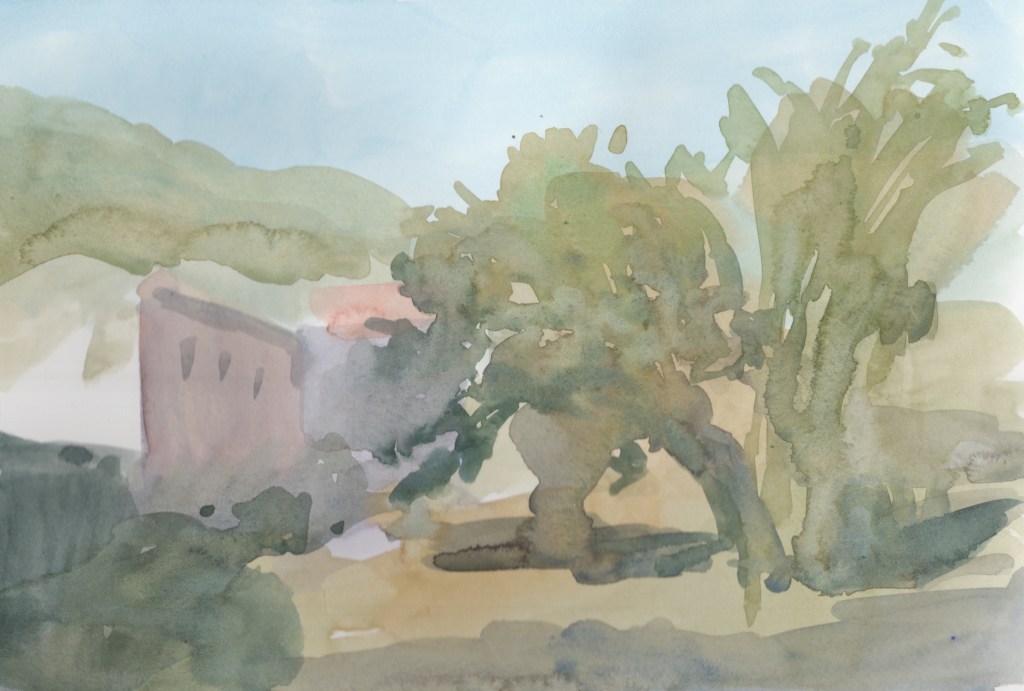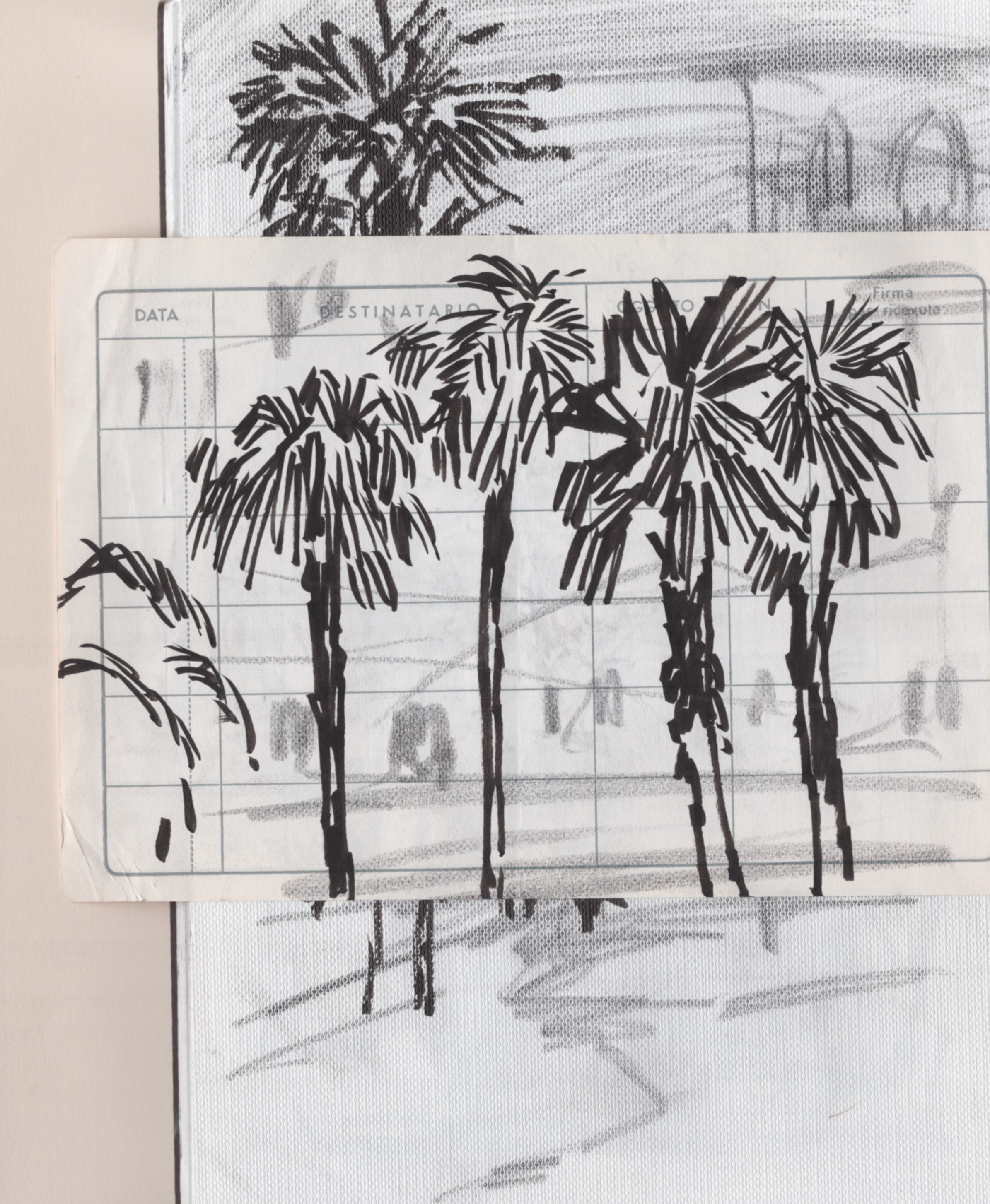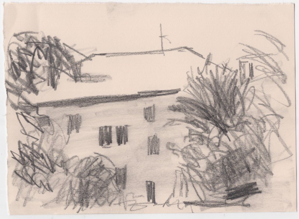The procedure starts with painting from nature. Paint and draw, because drawing becomes a complementary experience to painting, permitting one to collect a series of notes, and a plot to work on.
