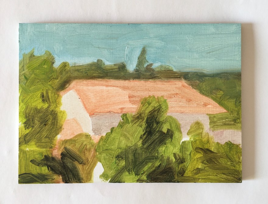 Lost in the pinks, browns and blues of the salty marshes, my journey took me to many different places around the natural reservoir working along the banks of the marshes under different shades of light and in the hinterland, where the golden fields are drawing sunburned dry hills and valleys. In this “painted journey,” I am following in the footsteps of painters such as Thomas Jones, Turner, Whistler and many others that started to build a new visual imaginary that has always inspired me. Thomas Jones is the first painter that inspired in me the idea of “discrepancy” in the landscape. If we cease to look at the landscape as a product of the human activity, we see an impressive amount of undecided spaces, like he has done in Naples in the years 1778-1779. It was then that he developed his landscape painting, not as a mimetic picture of reality, but as a structural and geometrical projection of forgotten pieces of the city, neglected fragments which he framed on paper.