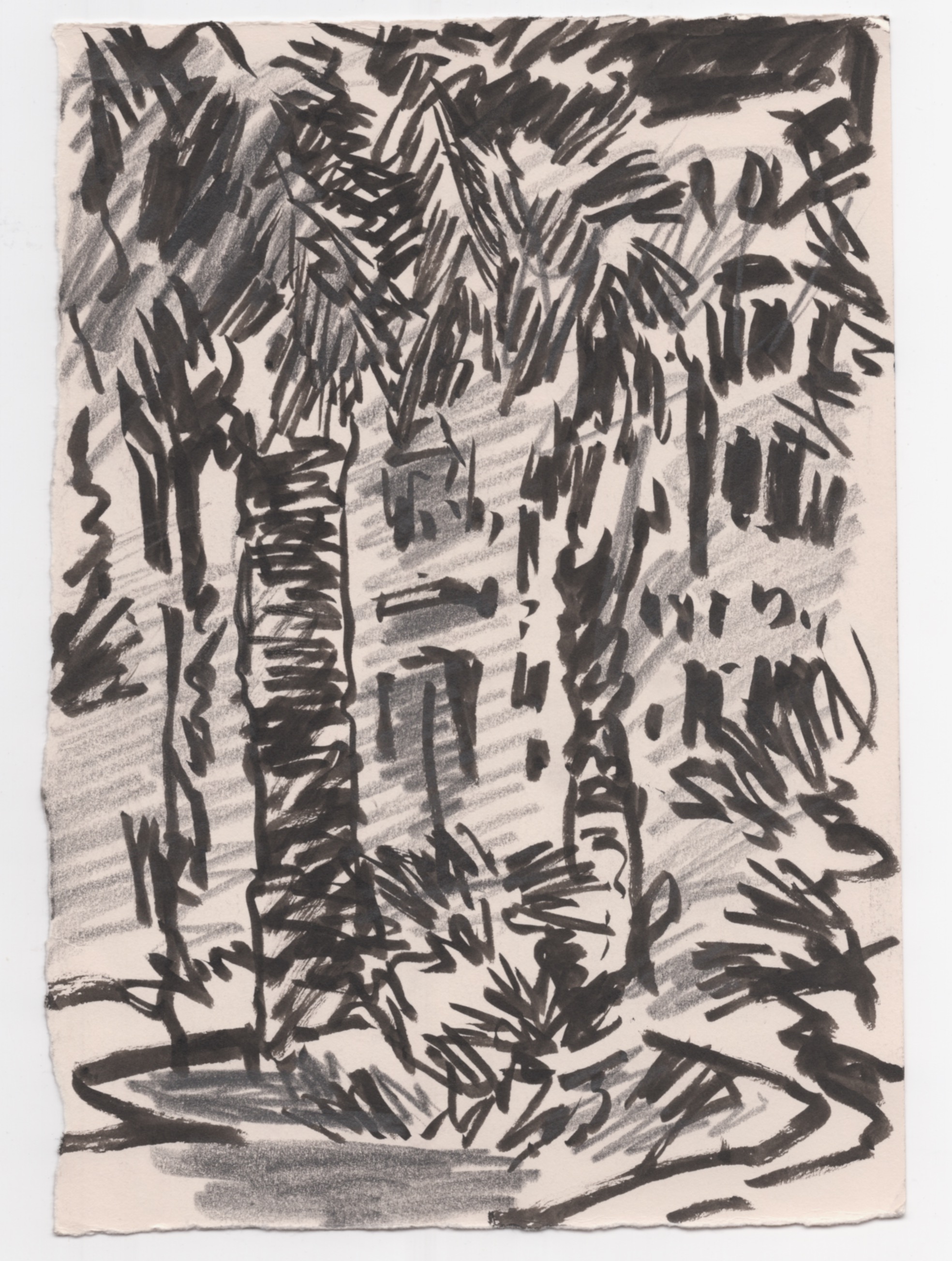 “In the frame of the vast natural park, it is possible to move only on foot in order not to scare the wild animals and these constraints led me to choose a fast and easily transportable way with which to work outside: small-format panels and canvases and techniques that predispose to synthesis, a poetic of the essential.