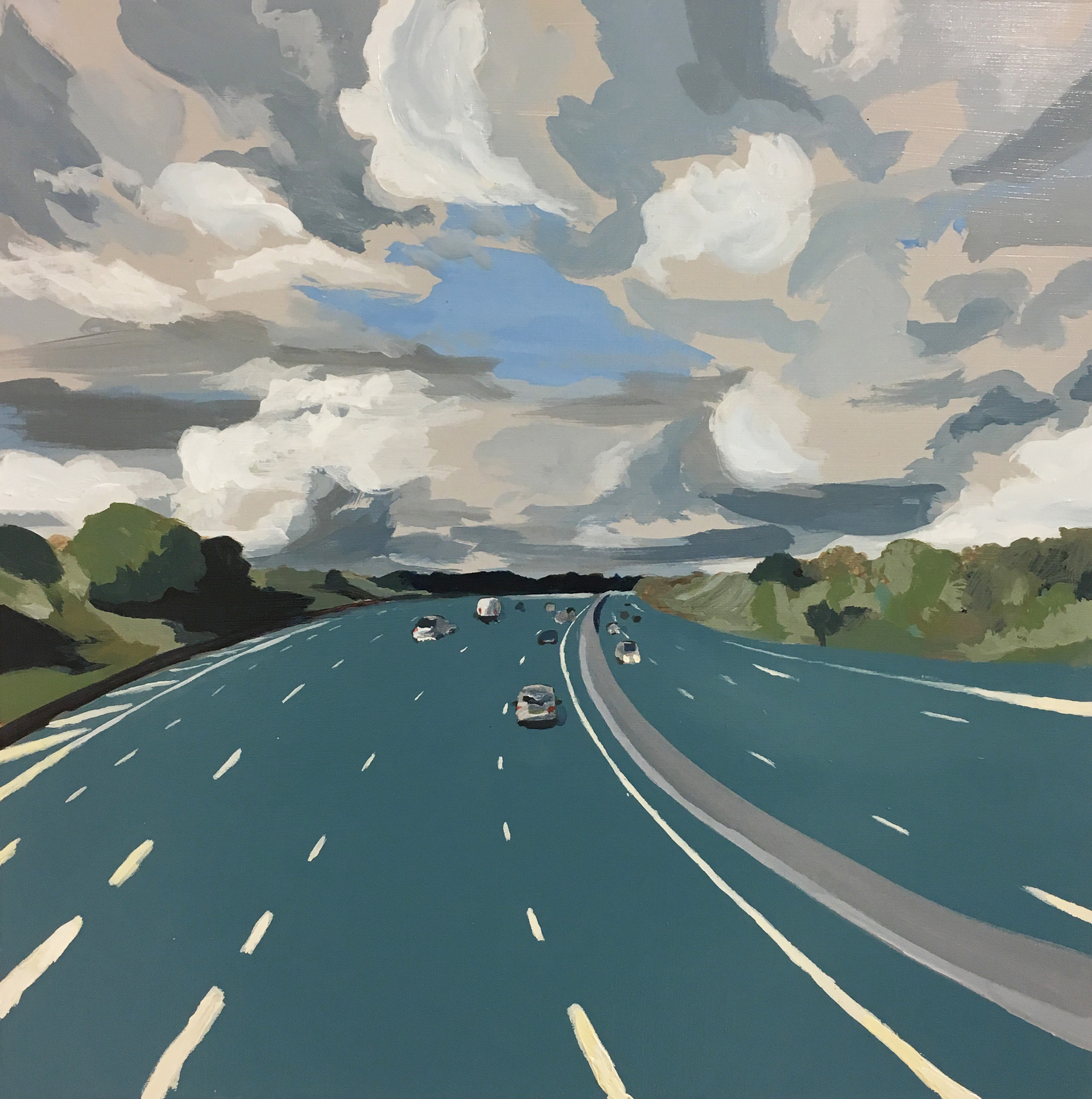 Storm on m25. #1. Acrylic on wood, 40×40